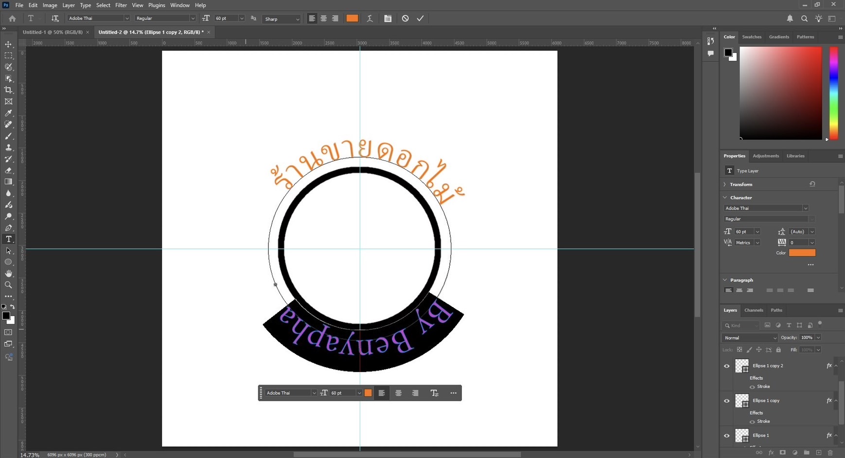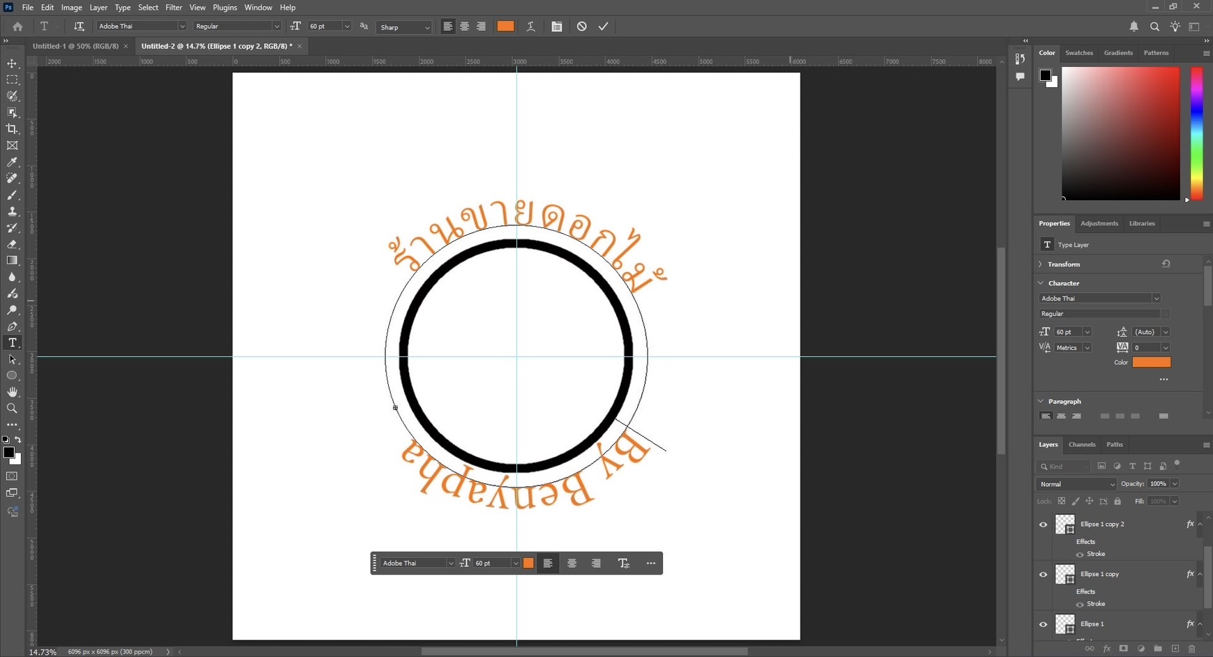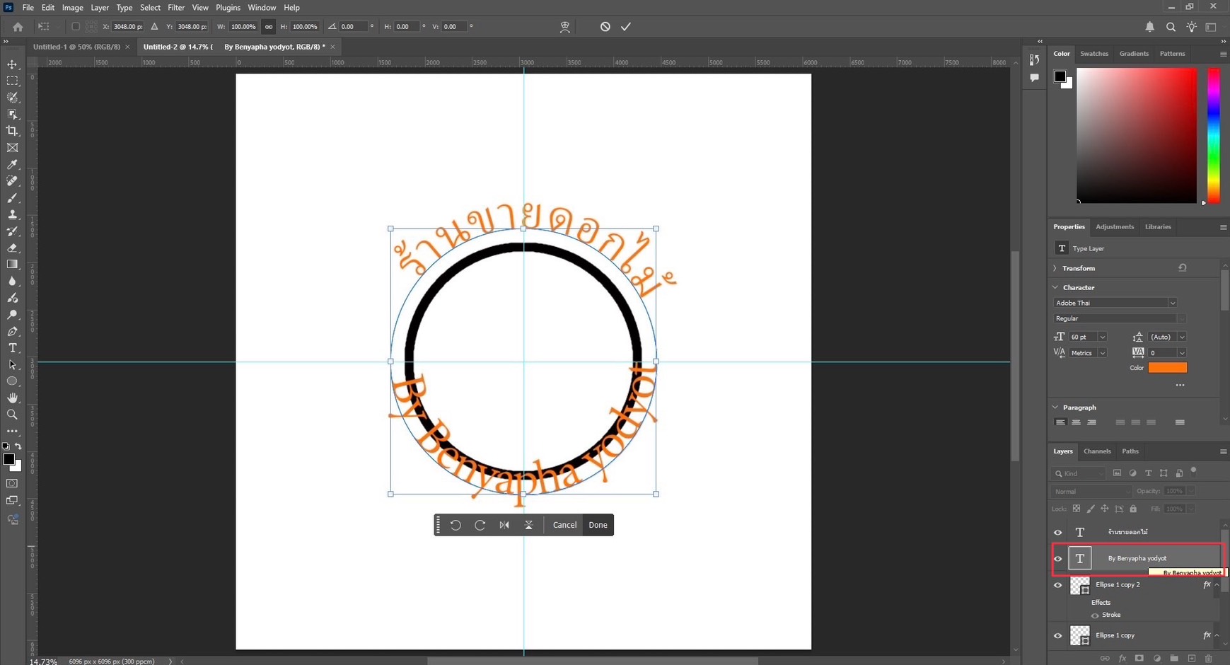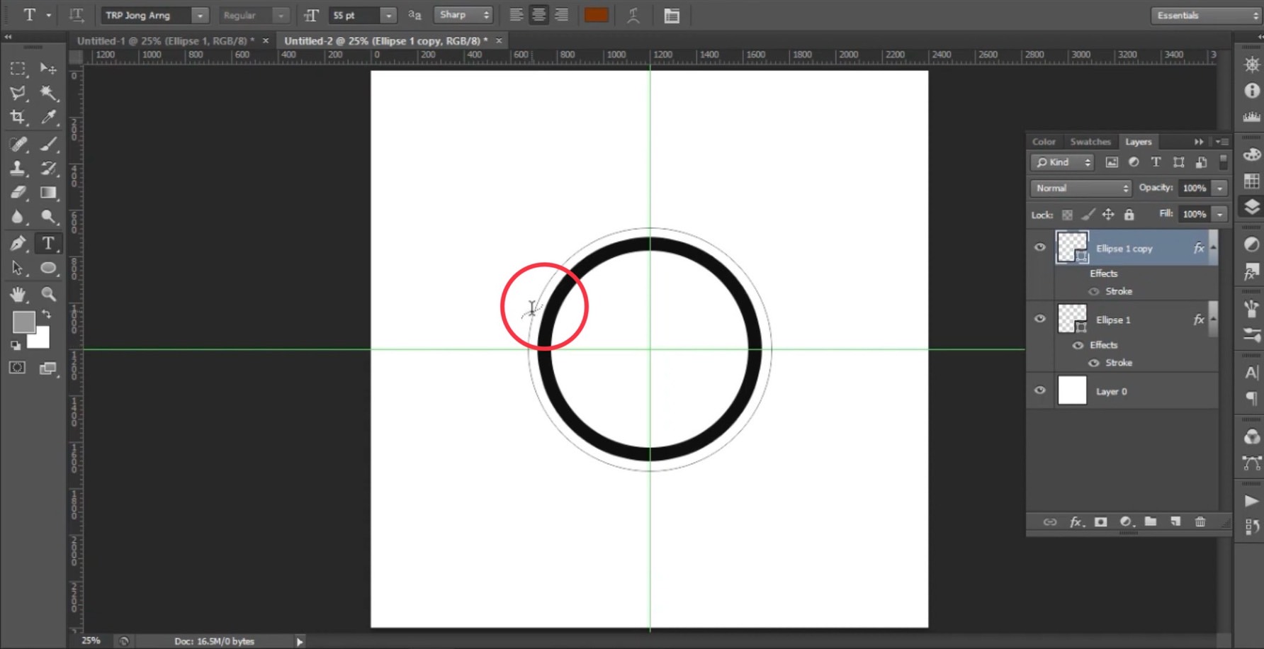 13. จากนั้นกด Crrl T เพื่อขยายวงกลมวงที่ 2 และเลื่อนเมาส์ไปที่หัวมุมด้านขวาลากไปเป็นมุมทะแยง