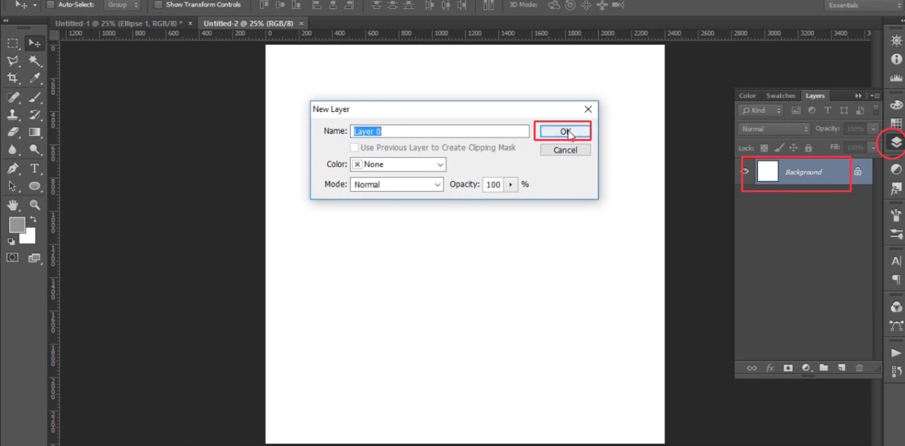 7. เลือกใช้เครื่องมือ Ellipse Tool เพื่อสร้างรูปทรงวงกลม