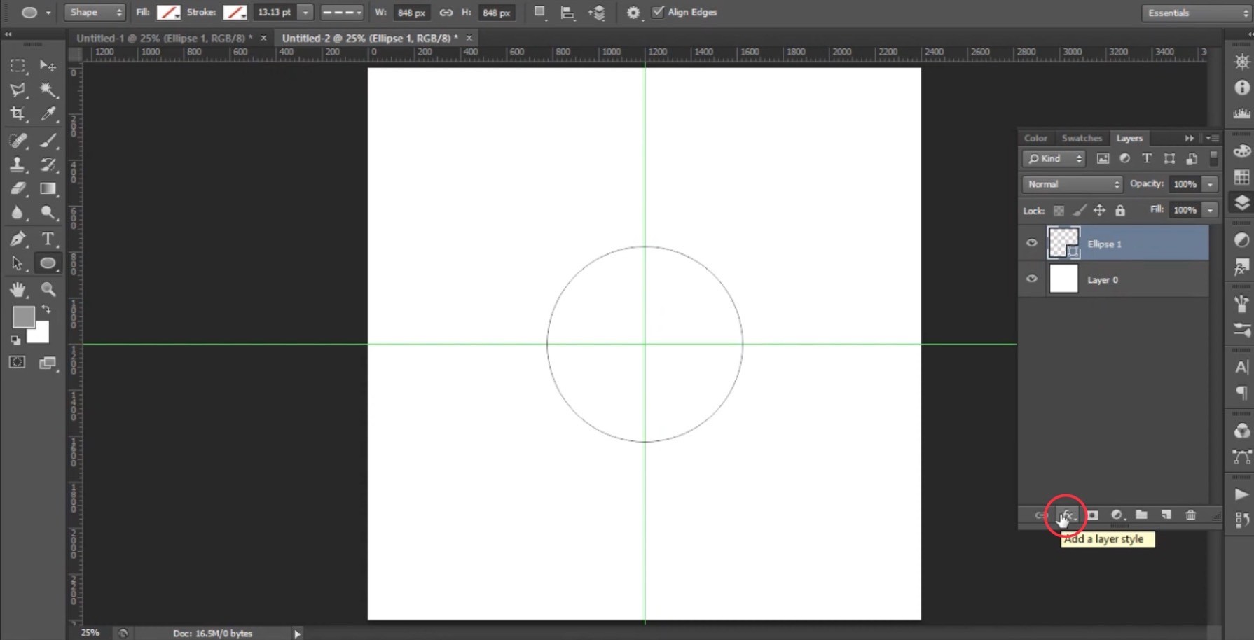8. ใช้เมาส์ไปวางไว้จุดกึ่งกลางและลากให้เป็นวงกลมและกดไปที่ fx