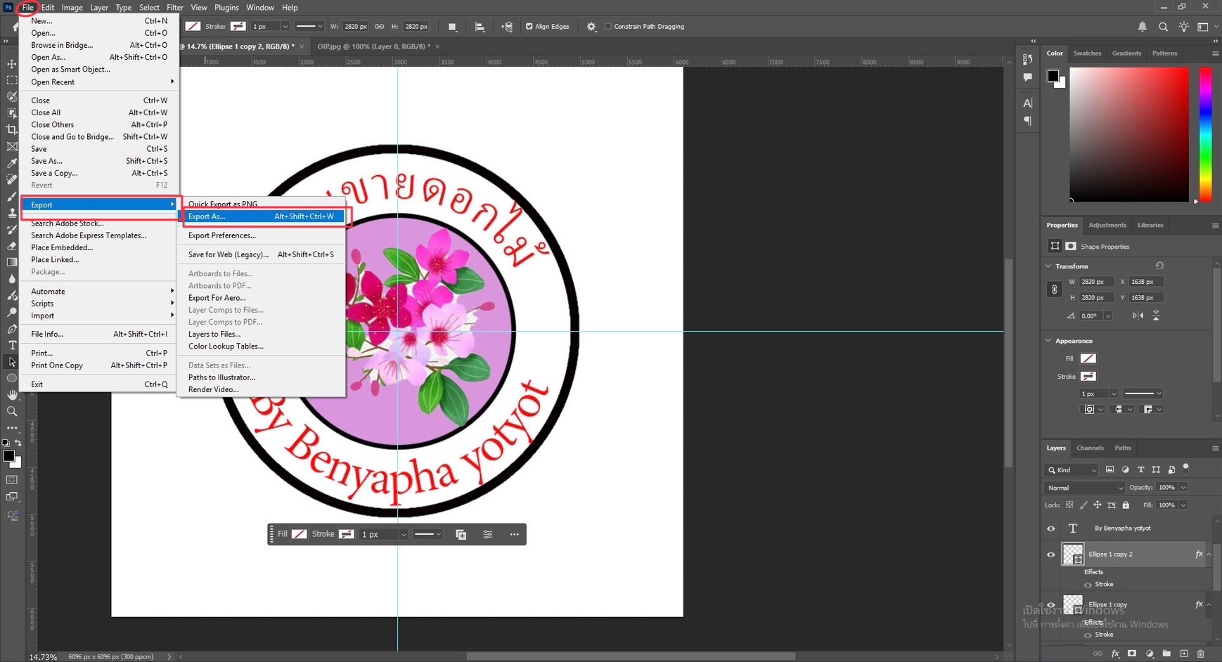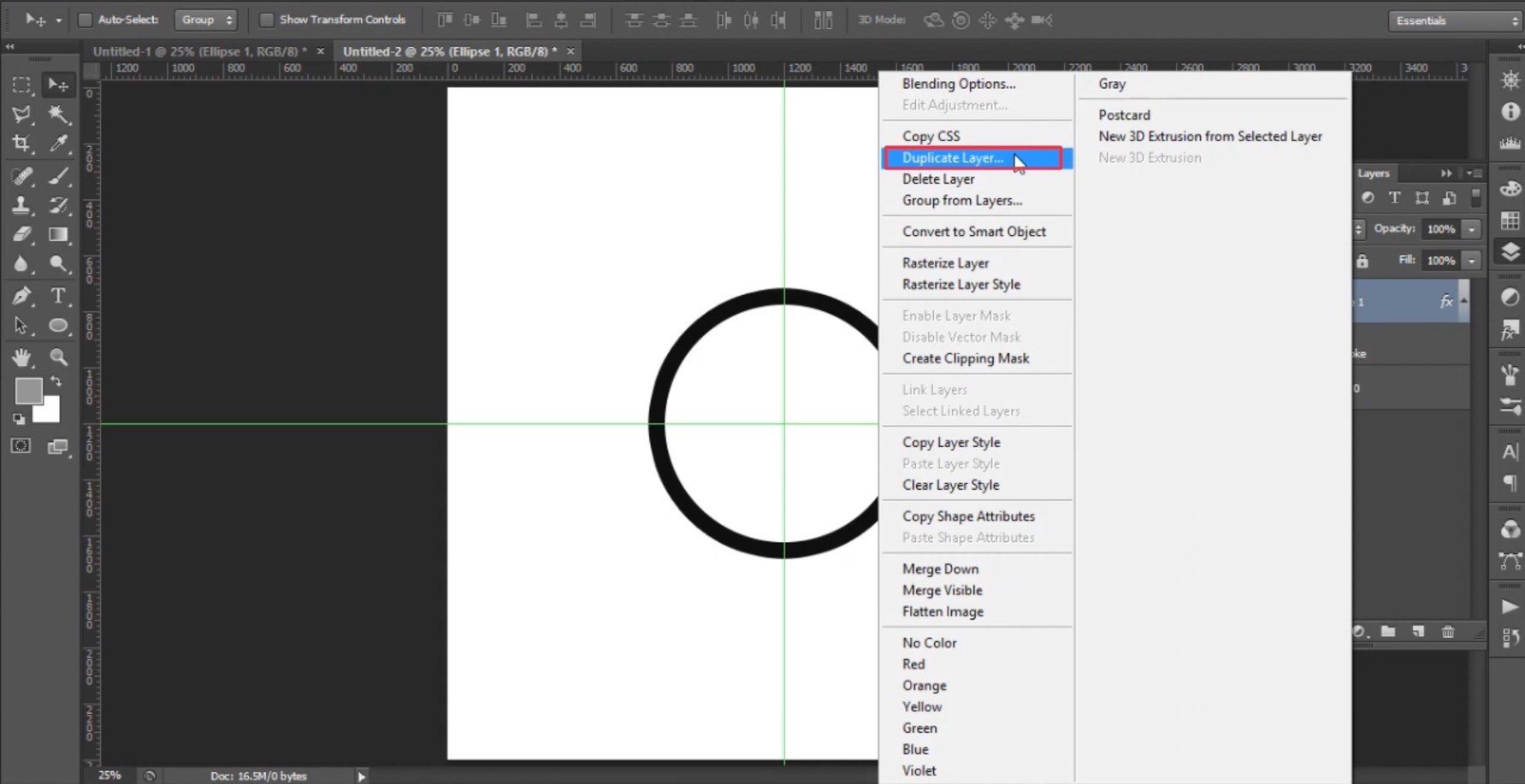19. คลิกขวาที่ Ellipse1 copy และเลือก Duplicate Layer