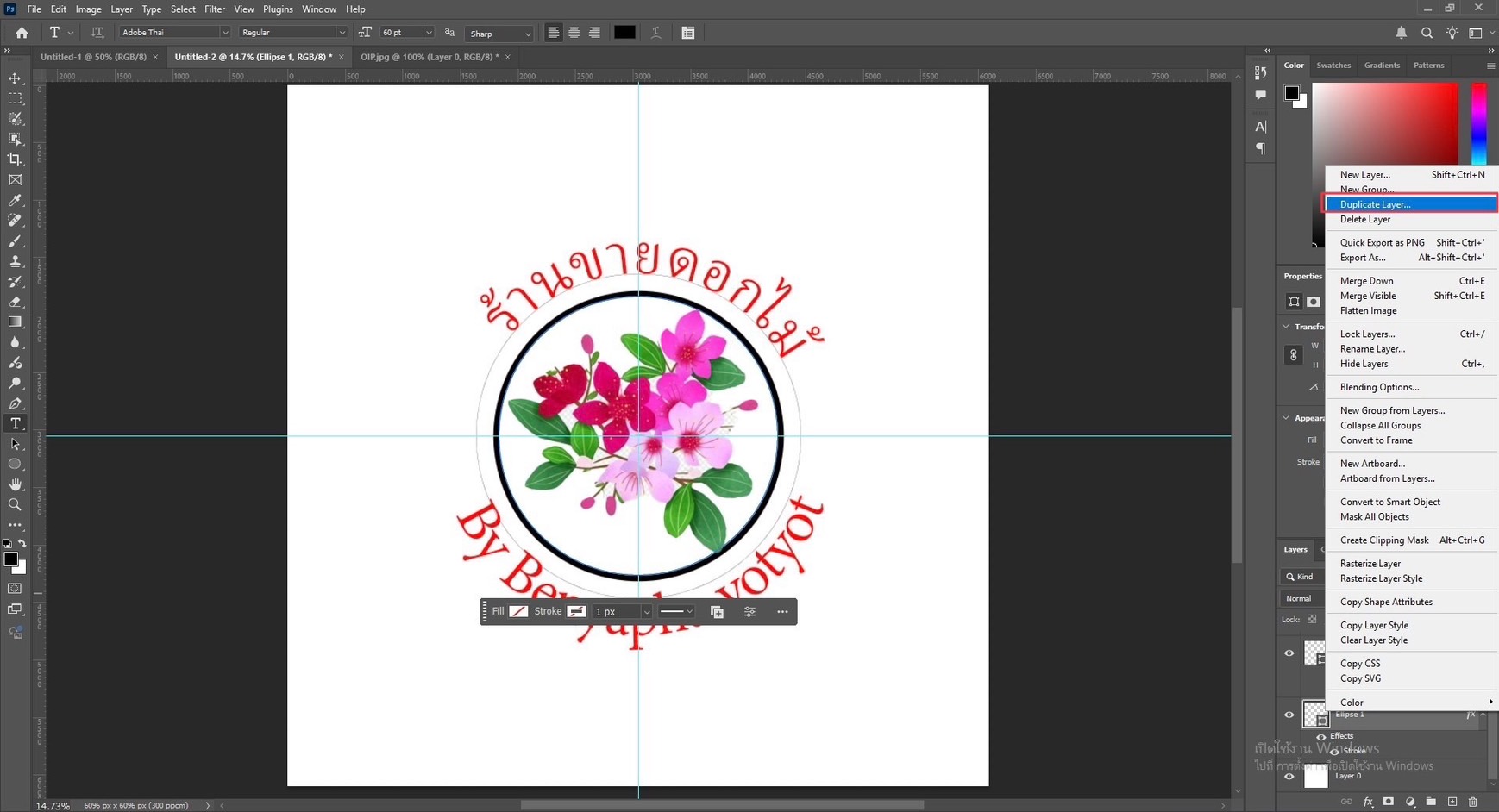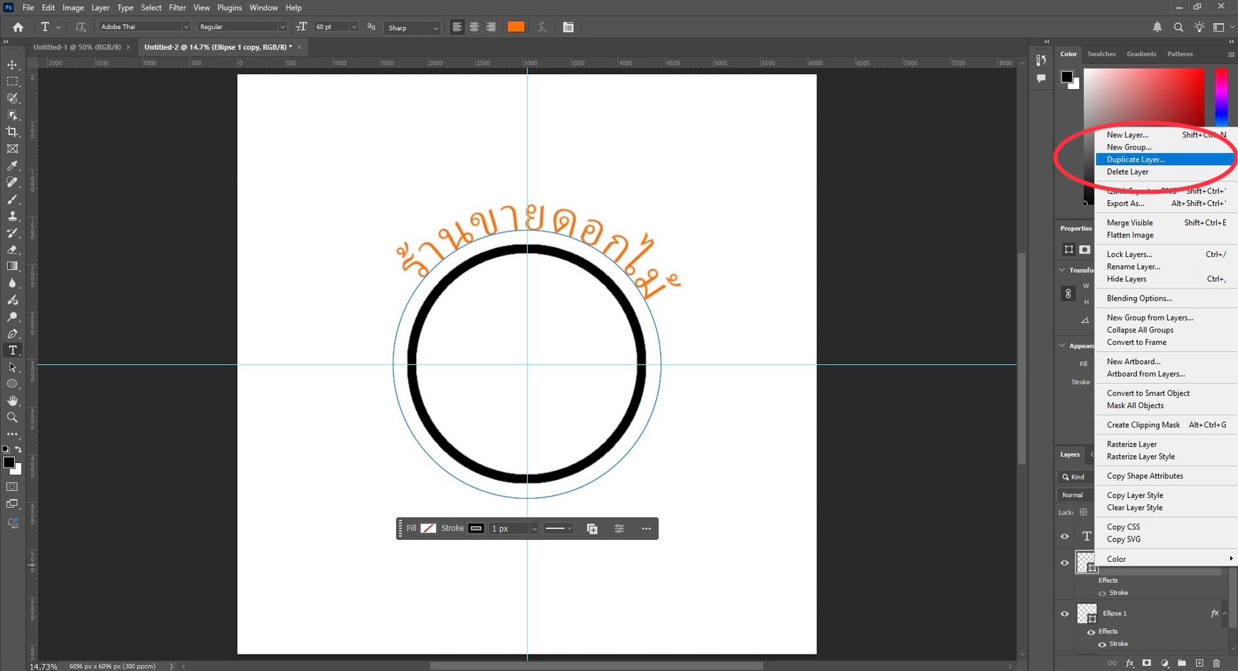 32. จากนั้นกดคลิกขวาที่ Ellipse 1 เลือก Duplicate Layer
