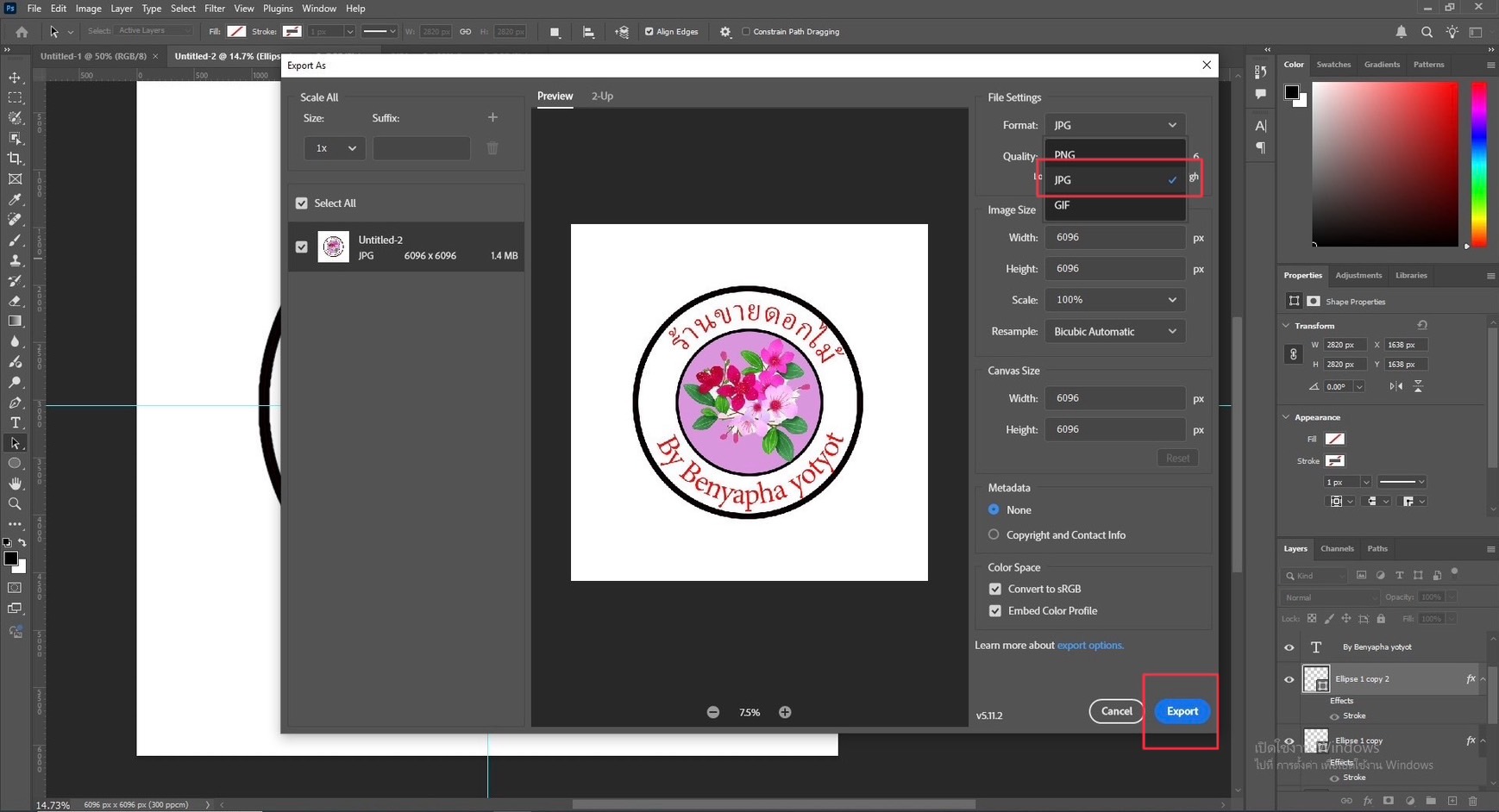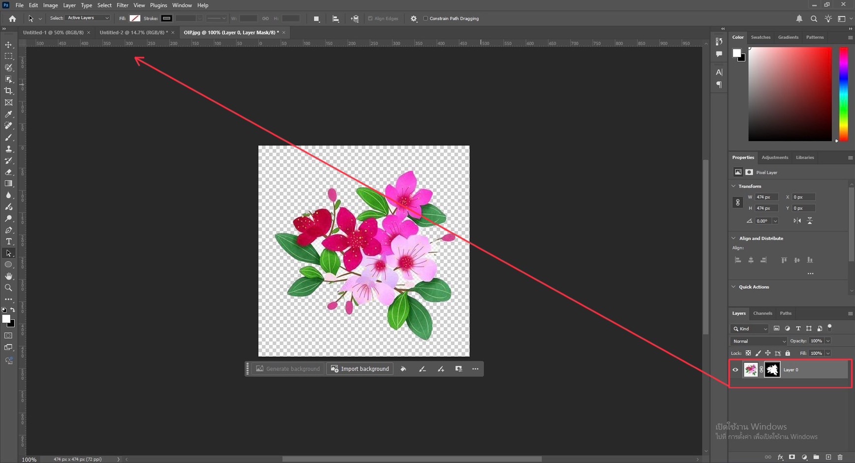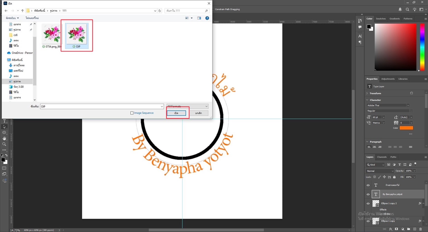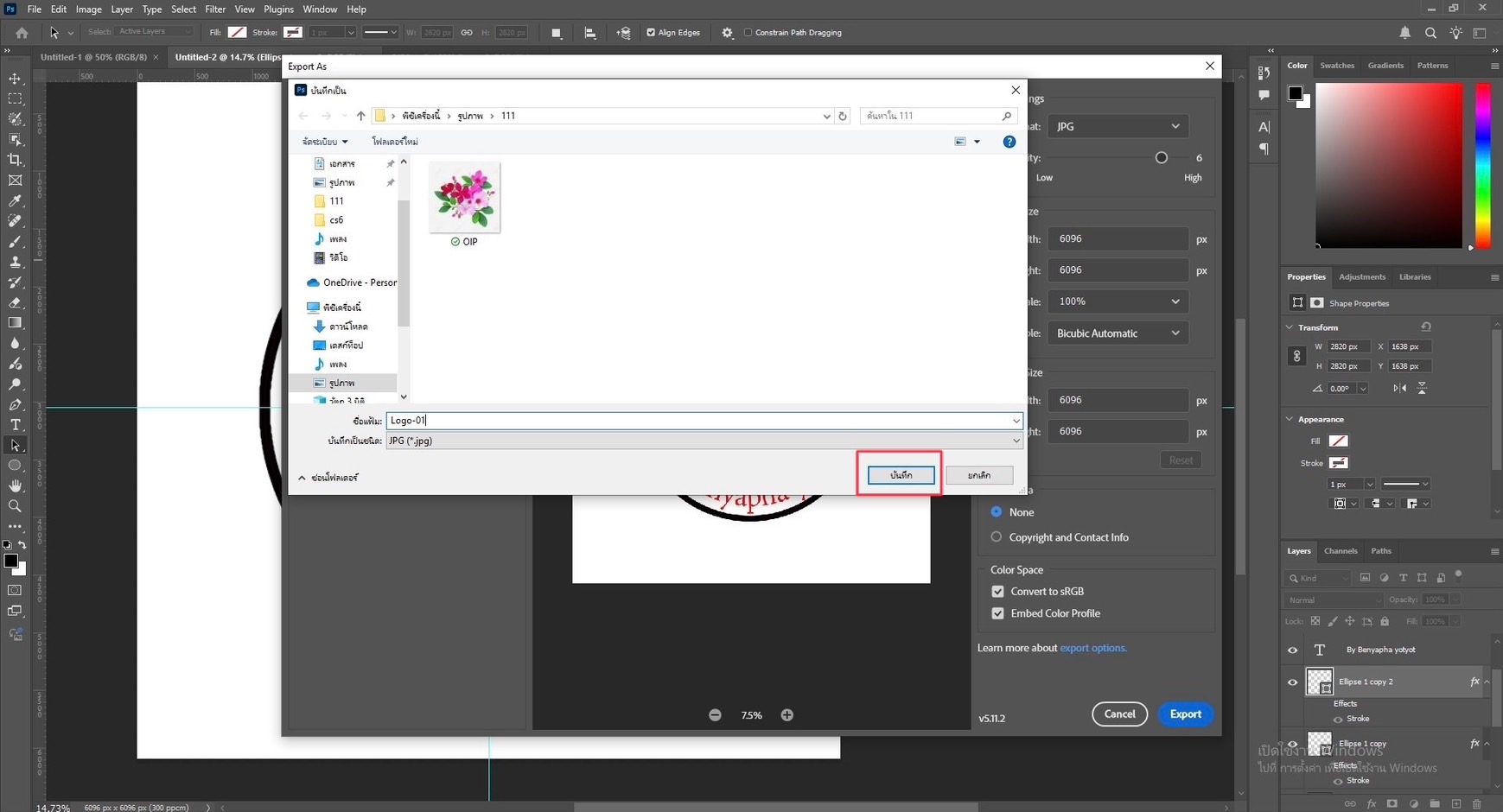 30. เมื่อที่ Layers ขึ้นตามภาพแล้ว ให้ลากไฟล์ภาพไปที่แผ่นงานที่มีโลโก้ที่ทำไว้