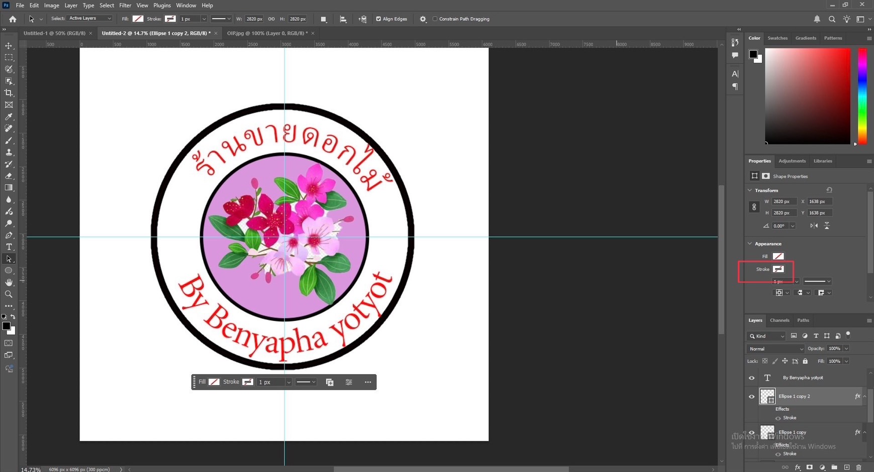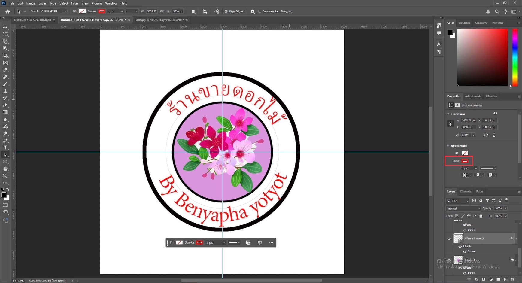 34. หากยังมีวงกลมสีใสอยู่ให้ดูที่ Appearance หาก Stroke ยังแสดงขึ้นตามภาพให้คลิกซ้ายเข้าไป 1 ครั้ง